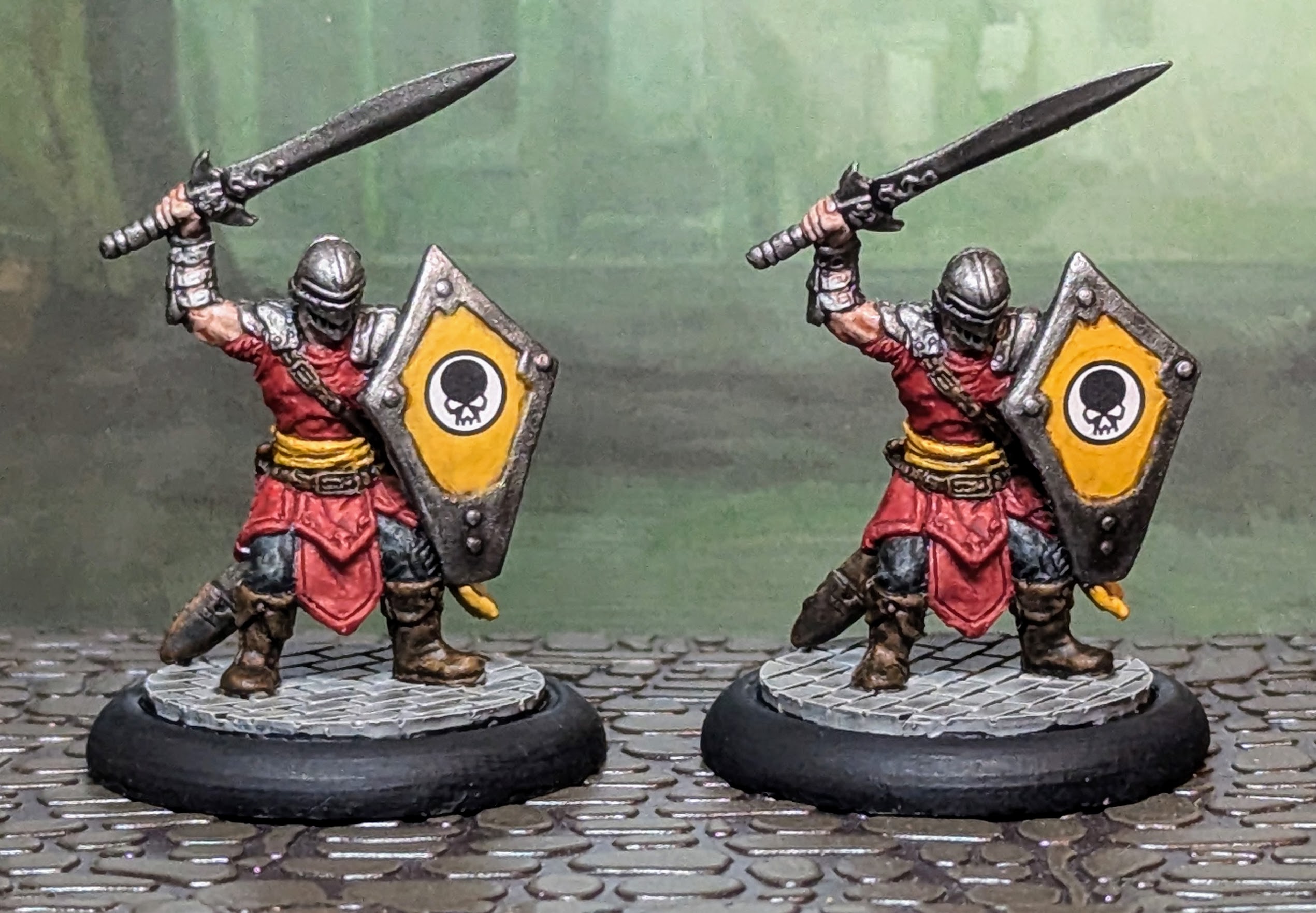 The Artist has the ability to make images in their paintings come to life as defensive duplicates, which is why I opted to use two monopose Wizkids Dungeons & Dragons miniatures to represent them. I did give them a weapon swap as their original sword were laughably flimsy. They are a little short, but they aren't meant to real people, so it doesn't bother me.